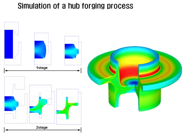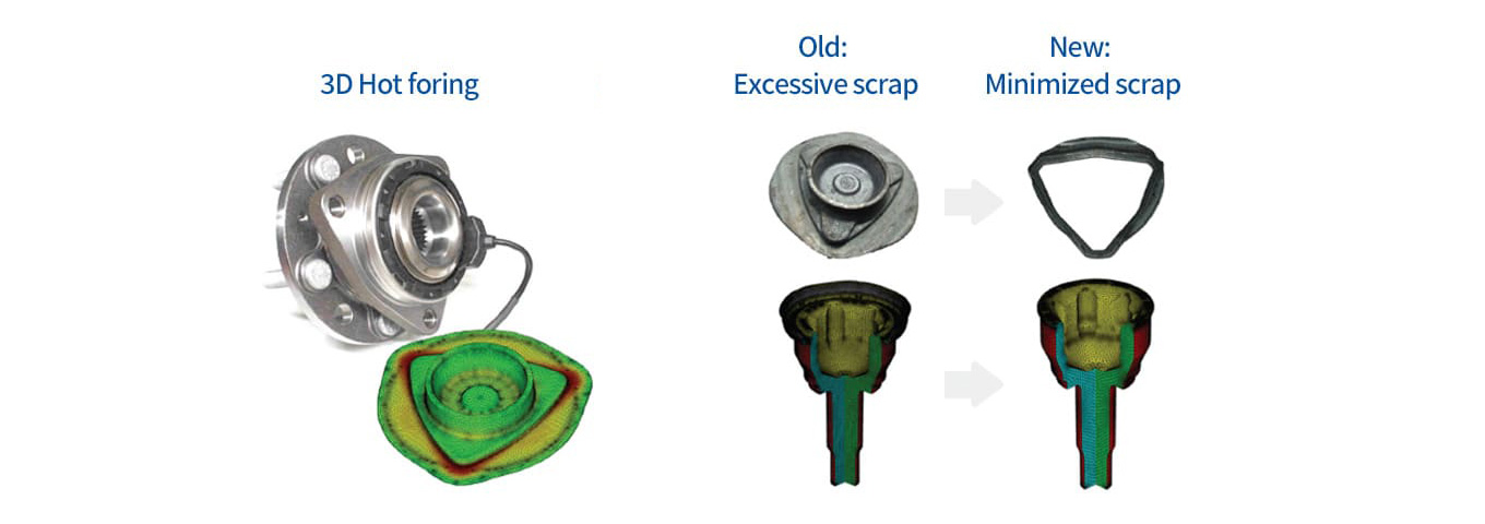 Based on the quality of metal flow lines, the strength of the existing bearing products was enhanced. This resulted in a reduction of material load from 1. 1kg to 0.82kg, yielding approximately 25% in savings in production costs. The metal flow line in thermomechanical processing refers to the orientation of fibrous structures flowing in a specific direction, and is a crucial metric in process enhancement.